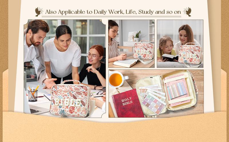 - Large Bible Bag (12 x 9 x 2.5 in.) – Spacious enough to hold your Bible, notebook, pens, and devotionals.