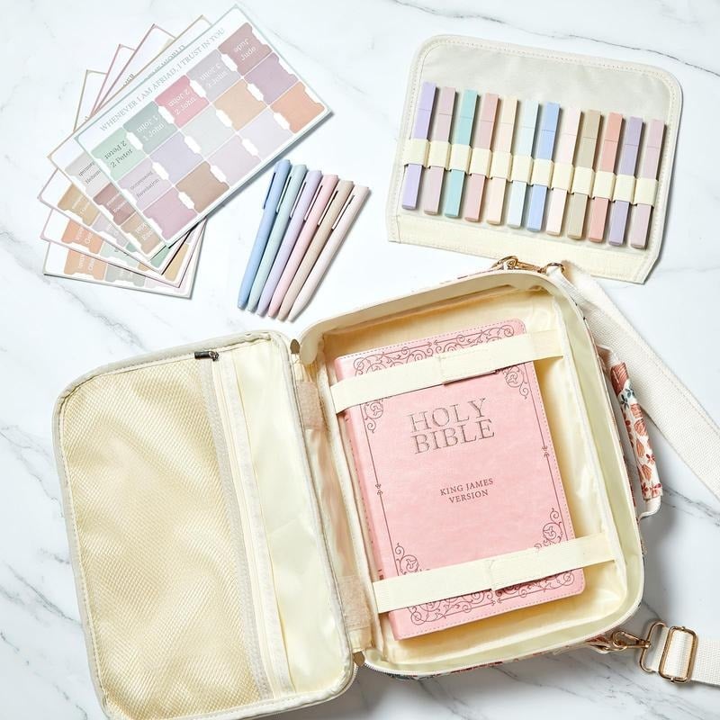 Carry your faith in style with this beautifully designed Bible case and journaling kit.