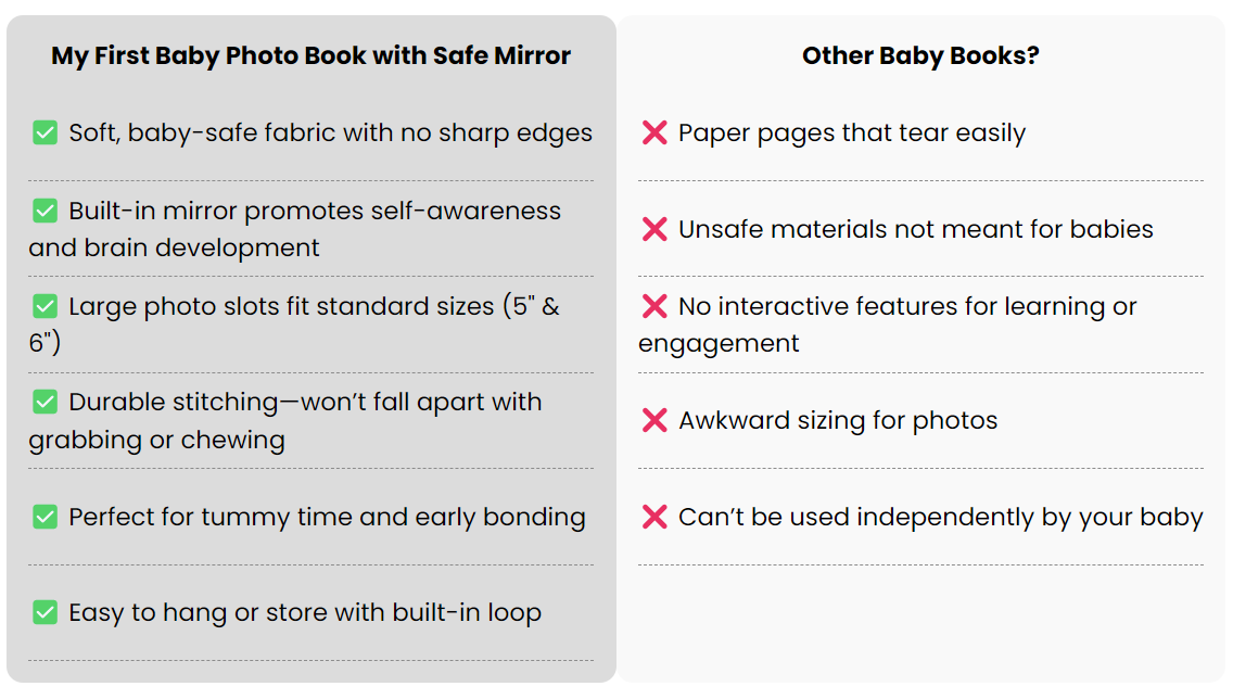 No wonder so many parents are switching to the My First Baby Photo Book with Safe Mirror: